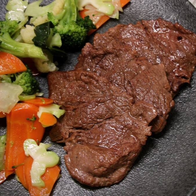 Madalhão de Mignon (aprox. 180g para 1 Pessoa, 360g para 2 Pessoas e 540g para 3 Pessoas, carne in natura) Acompanha legumes diversos salteados no azeite e arroz branco.