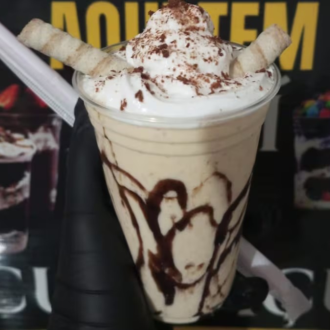 Delicioso Milk-Shake Artesanal com a Receita Exclusiva da Cleópatra preparado no Copo, feito na cozinha da Cleópatra com vários sabores deliciosos! "Imagem meramente ilustrativa"