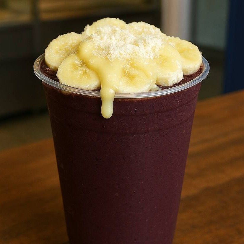 Combinação de açai, creme de leitinho, leite condensado e leite em pó