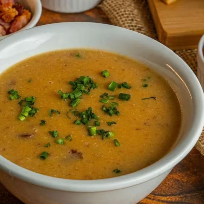 O Caldo de Creme de Cebola é uma opção reconfortante, ideal para dias mais frios. Feito com cebolas douradas, creme de leite e temperos aromáticos, esse caldo combina uma textura cremosa com o sabor adocicado e suave da cebola.