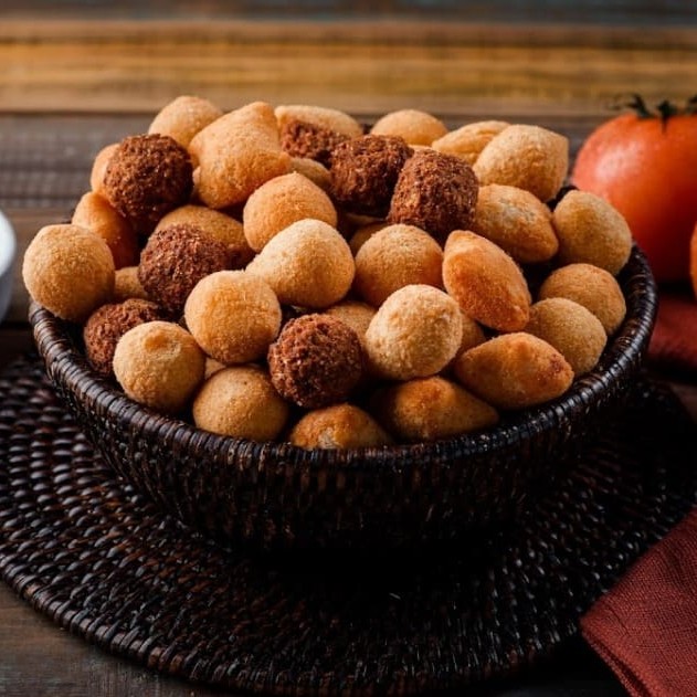 Escolha até 2 sabores: Mini Coxinhas de Frango, Mini Bolinhas de Queijo, Mini Croquetes de Queijo com Presunto ou Mini Quibes.