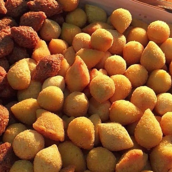 Escolha até 4 sabores: Mini Coxinhas de Frango, Mini Bolinhas de Queijo, Mini Croquetes de Queijo com Presunto e Mini Quibes.