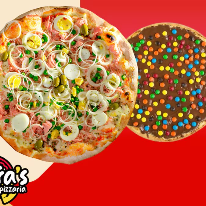 Pizza Grande 8 fatias 2 sabores mais pizza pequena 4 fatias 1 sabor doce