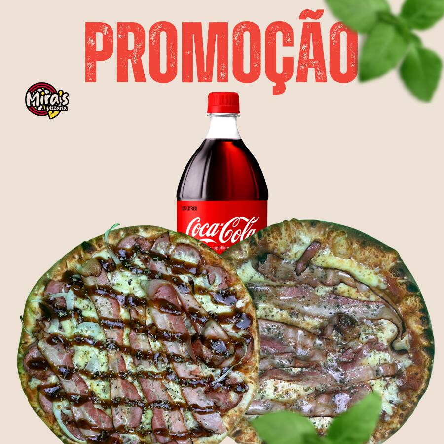 Pizza gigante 3 sabores + Pizza broto doce 4 fatias + coca cola 2l