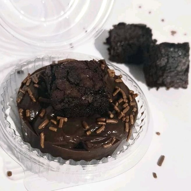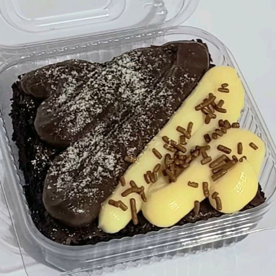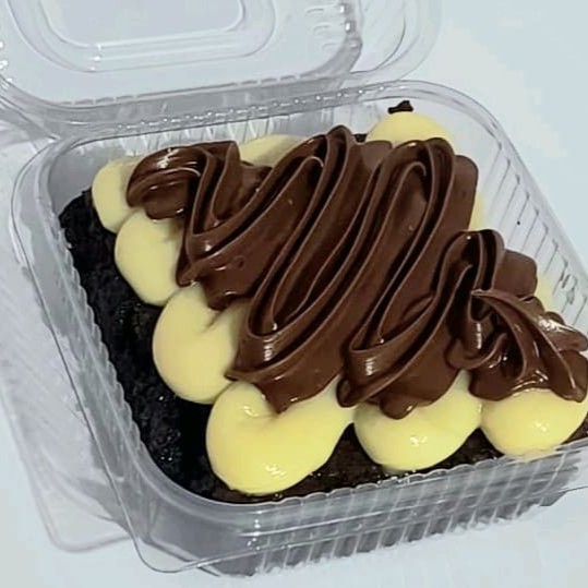Um delicioso brownie com uma camada generosa metade de brigadeiro 50% cacau e metade de leite Ninho. Peso em média 140g.