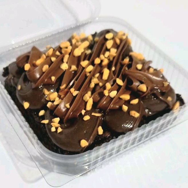 Um delicioso brownie com uma generosa camada de brigadeiro 50% cacau e Nutella, finalizado com amendoim triturado. Peso em média 140g.