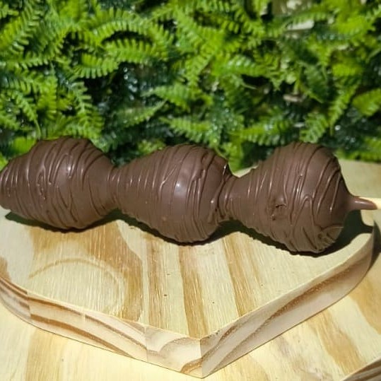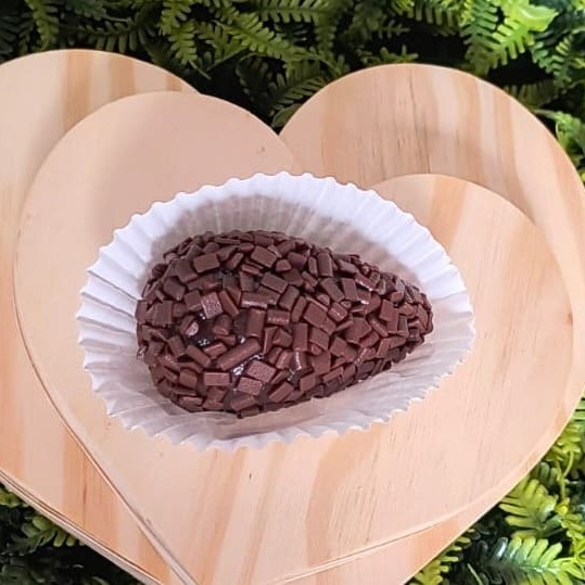 Deliciosa casquinha de chocolate recheada com um cremoso brigadeiro de cacau 50%. Peso em média 100g