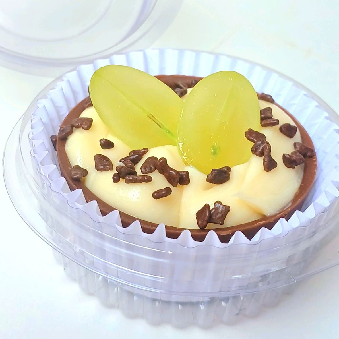 Sobremesa composta por creme de Ninho, uvas sem semente e ganache de chocolate. Finalizado com granulé e uvas. Peso médio 250g.