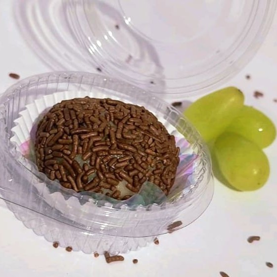 Deliciosa casquinha de chocolate recheada com uvas picadas e com um cremoso brigadeiro de leite Ninho. Peso em média 100g