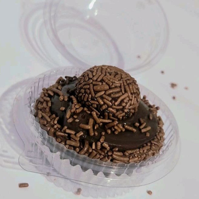 Deliciosa casquinha de chocolate recheada com pedacinhos de brownie e um cremoso brigadeiro 50%cacau. Peso em média 100g
