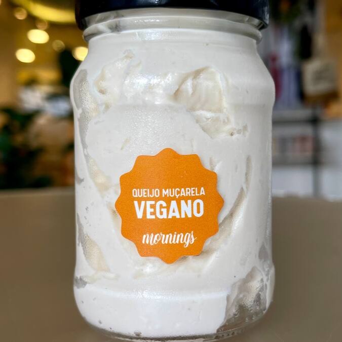 Muçarela Vegana Mornings feita de castanha de caju (190g). Alérgicos: contém oleaginosas. Obs: manter refrigerado.