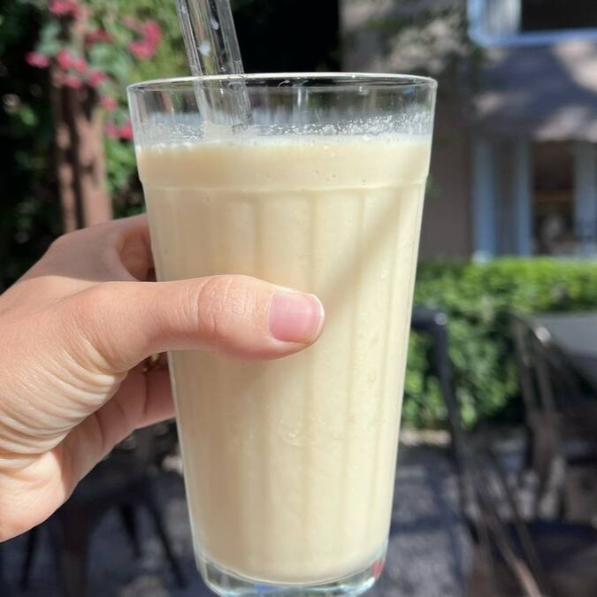 Banana, água de coco, pasta de amendoim e café. (400ml)