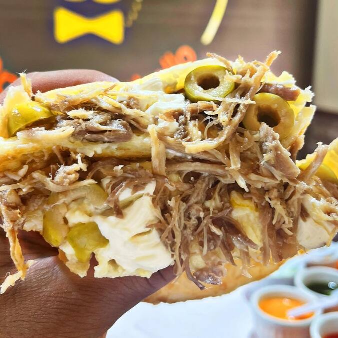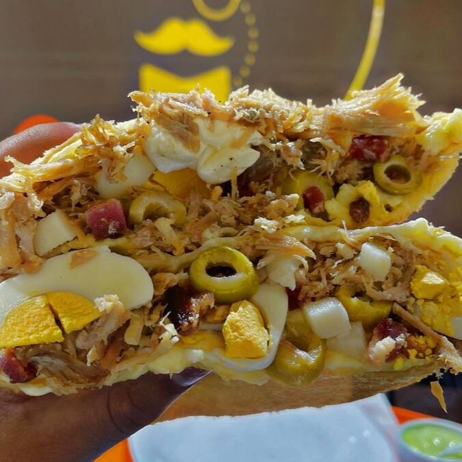 Pastel com pernil bem temperado e suculento, azeitonas frescas e fatiadas, com uma generosa porção de Catupiry de qualidade.