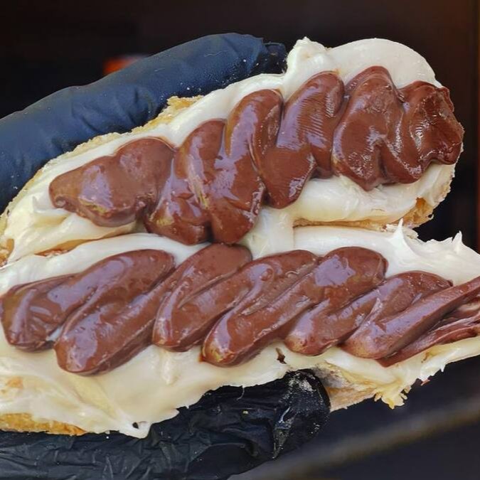 Esse delicioso pastel combina o melhor de dois mundos, chocolate preto e chocolate branco. Pastel bem recheado, extremamente crocante envolto no açúcar de confeiteiro.