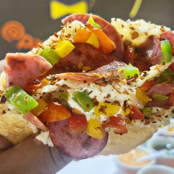 Esse pastel é elaborado com queijo mussarela, calabresa de primeira qualidade, cebola, com uma pequena nota de pimenta calabresa, pimentão verde, amarelo e vermelho.