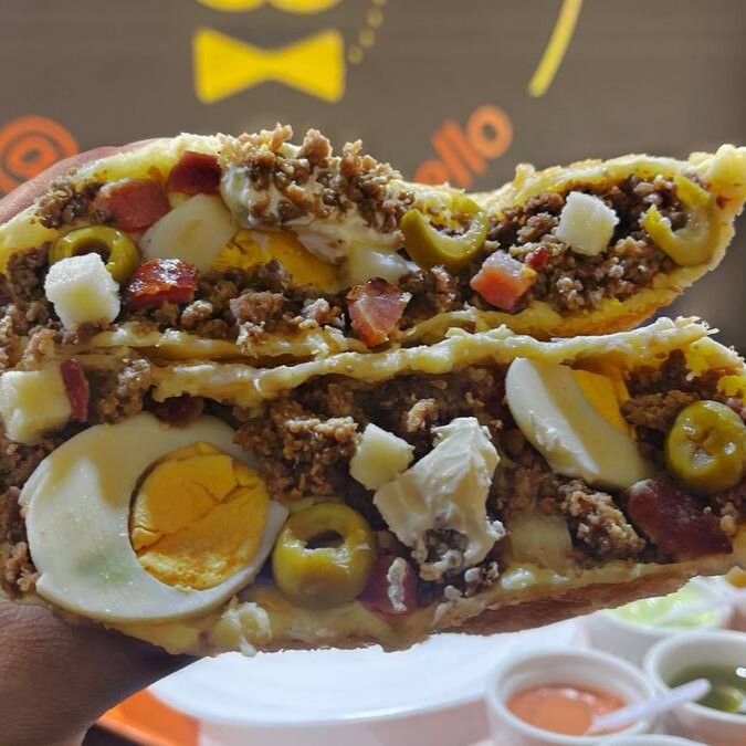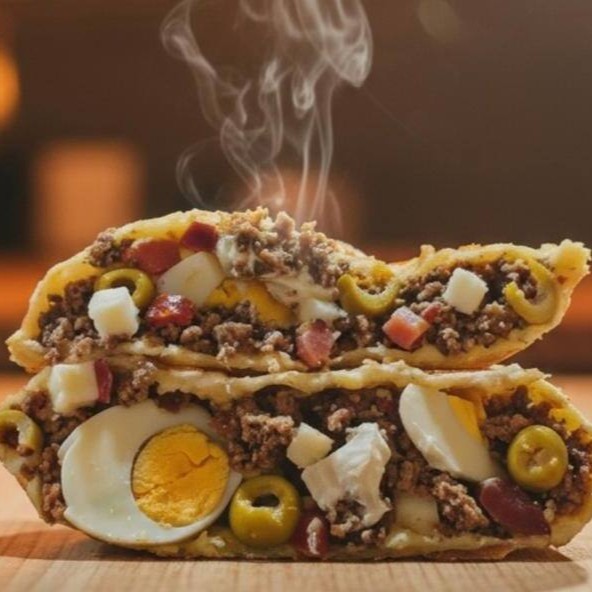 Pastel especial de carne que traz deliciosos ingredientes como: carne, queijo, ovo, bacon, azeitona, palmito e Catupiry.