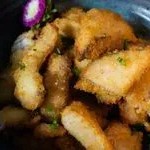 Arroz Salmão Cream Cheese Empanados e fritos ao molho tarê e gergelim
