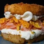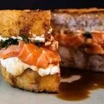 Delicioso hambúrguer de salmão grelhado, preparado com esmero e habilidade. O suculento salmão recebe leve grelhado, que realça seu sabor inconfundível e a textura macia. Acompanhando, temos um generoso toque de cream cheese, trazendo cremosidade e um contraste perfeito para o peixe. O arroz,
