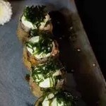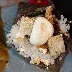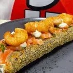 Cone de alga com arroz, camarão e cream cheese, coberto com cryspi Alho poró.