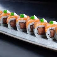 10 Unidades - Um hot roll especial com recheio de salmão e cream cheese, molho teriyaki e cebolinha por cima,