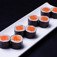 10 unidades. Enrolado com arroz por fora, gergelim, nori e recheio de salmão e Cream Cheese.