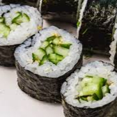 10 Unidades enrolados com arroz por fora, gergelim, nori e recheio de manga, kani e pepino.