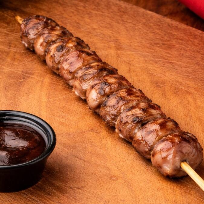O Espetinho de Coração de Frango é um clássico do churrasco. Preparado com corações selecionados, macios e bem temperados, ele vai à brasa até ficar dourado por fora e suculento por dentro. Com sabor intenso e textura irresistível, é a escolha certa para quem aprecia um espetinho tradicional, cheio de personalidade e perfeito para acompanhar um chopp gelado.
