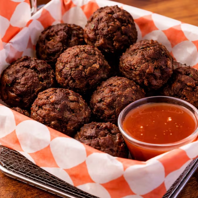 A Porção de Bolinhos de Carne Temperados é feita com carne bem temperada, macia por dentro e dourada por fora. Suculentos e cheios de sabor, são perfeitos para petiscar, compartilhar e acompanhar com molho especial e uma bebida gelada. Um clássico que agrada em qualquer momento.
