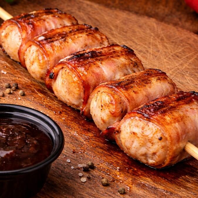 Espetinho De Medalhão De Frango Com Bacon