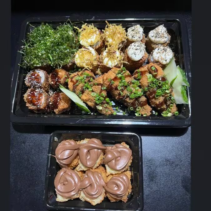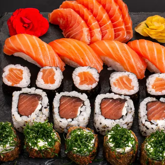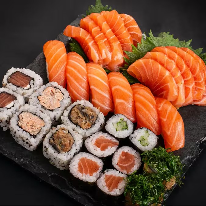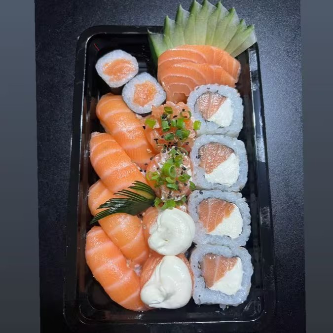 Na compra de uma barca casal de 50 peças, ganha uma porção com 8 unidades de hot Filadélfia