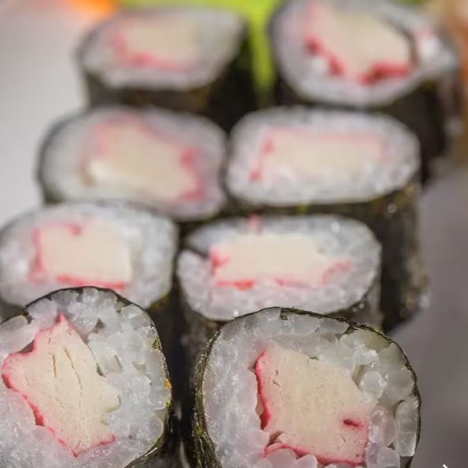 Enrolado com nori e arroz, recheado com Kani