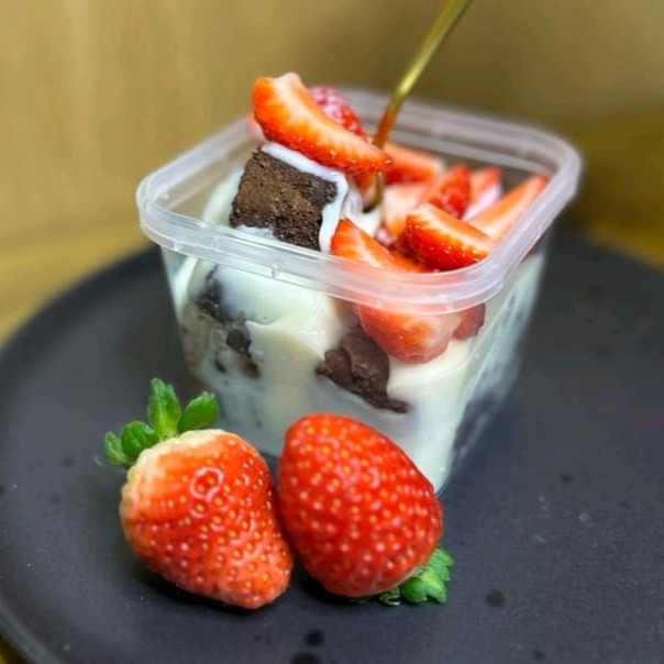 Camadas generosas de brownie artesanal da Niná, com casquinha crocante e interior bem molhadinho, combinadas com creme leve de leite Ninho, Nutella e morangos frescos. Uma combinação feita pra aconchegar — doce na medida, com carinho em cada colherada. Serve até 1 pessoa - aproximadamente 250g ---------------Palavras-chave---------------------- Entrega rápida, frete grátis, promoção, cupom, melhor preço, doces, bolos, sobremesa, gourmet, confeitaria, doceria, bolo caseiro, brownie, brownie cremoso, brownie recheado, brownie gourmet, chocolate, brigadeiro, Nutella, Ferrero, Ninho, leite Ninho, avelã, creme de avelã, morangos, morango fresco, bolo no pote, sobremesa no pote, copo da felicidade