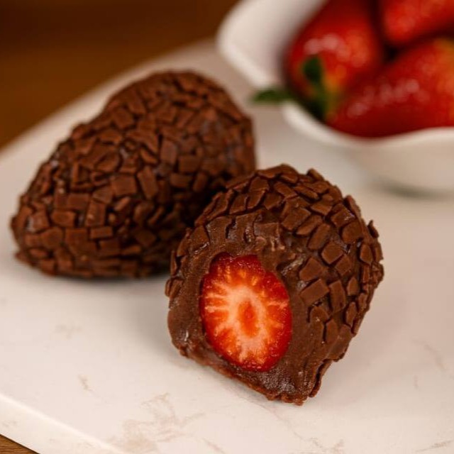 Coxinha de Morango - Brigadeiro Ao Leite Morango fresco selecionado envolto em brigadeiro ao leite cremoso que derrete na boca. Irresistível! Serve 1 pessoa - aproximadamente 75g -------------Palavras-chave---------------------- Entrega rápida, frete grátis, promoção, cupom, melhor preço, doces, bolos, bombom de morango, coxinha de morango, bombom, brigadeiro, chocolate, morango, sobremesa, gourmet, confeitaria, doceria, trufa