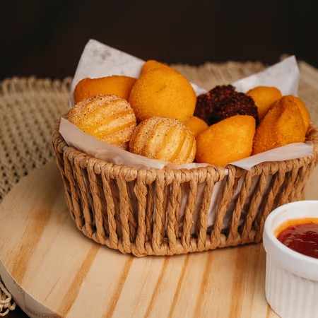Mini Churros Recheados Deliciosos mini churros recheados com doce de leite e levemente empanados com açúcar e canela. Uma combinação perfeita de sabores e texturas! Características - Mini churros frescos e quentinhos - Recheados com doce de leite cremoso - Empanados com açúcar e canela para um toque extra de sabor