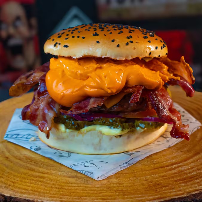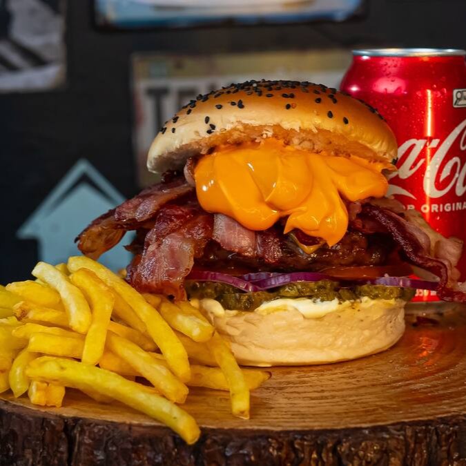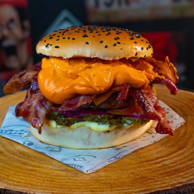 O 'Nobre Bacon Cheddar' é uma atração à parte em nossa hamburgueria. A combinação perfeita de um pão macio polvilhado com grãos de gergelim preto, abriga uma generosa camada de maionese caseira que realça o sabor do queijo cheddar derretido. O tomate fresco, os picles crocantes e a cebola trazem um toque de frescor, enquanto a alface adiciona uma textura crocante ao prato. O destaque fica por conta do farto bacon, crocante e saboroso, acompanhado do cheddar mesclado com parmesão, uma criação exclusiva do nosso chef. Tudo isso envolvendo um suculento hambúrguer artesanal Angus de 180 gramas. Este é, sem dúvidas, o carro chefe da nossa casa.