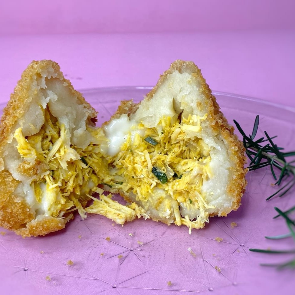Coxinha de frango com requeijão empanada na farinha panko que garante um crocância inigualavél.peso aproximado 180g