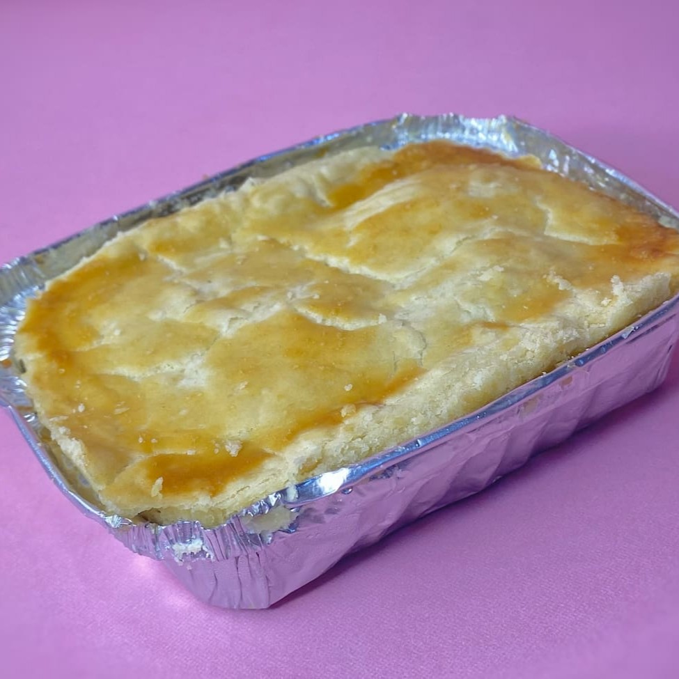 Delicioso empadão de frango com requeijão pesando aproximadamente 0,500 gr serve 2 pessoas