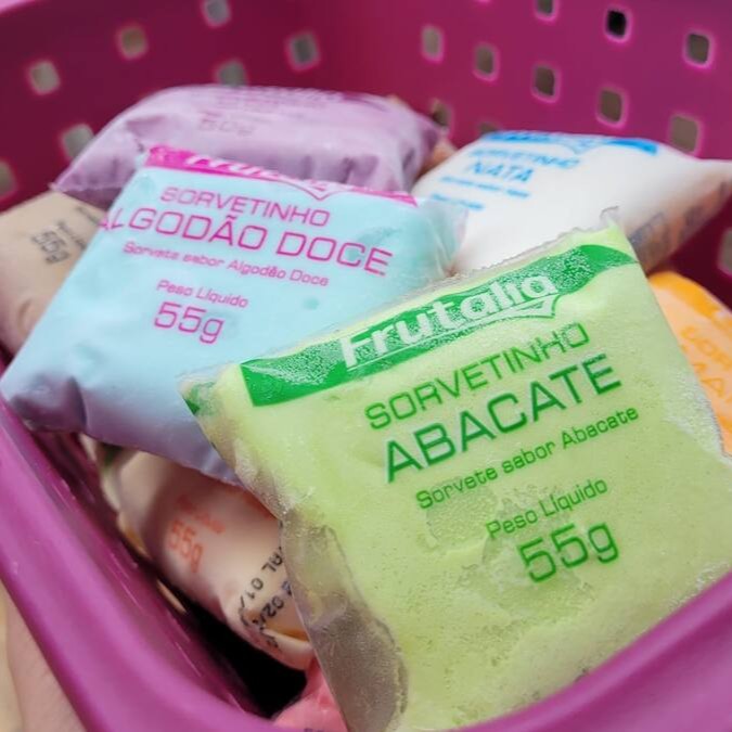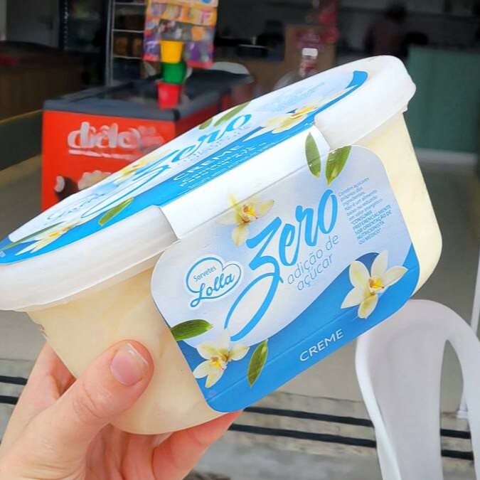 Sorvete sabor creme, morango e chocolate zero adição de açúcar