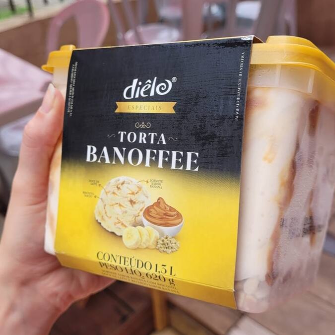 Sorvete sabor banana com biscoito macio e doce de leite.