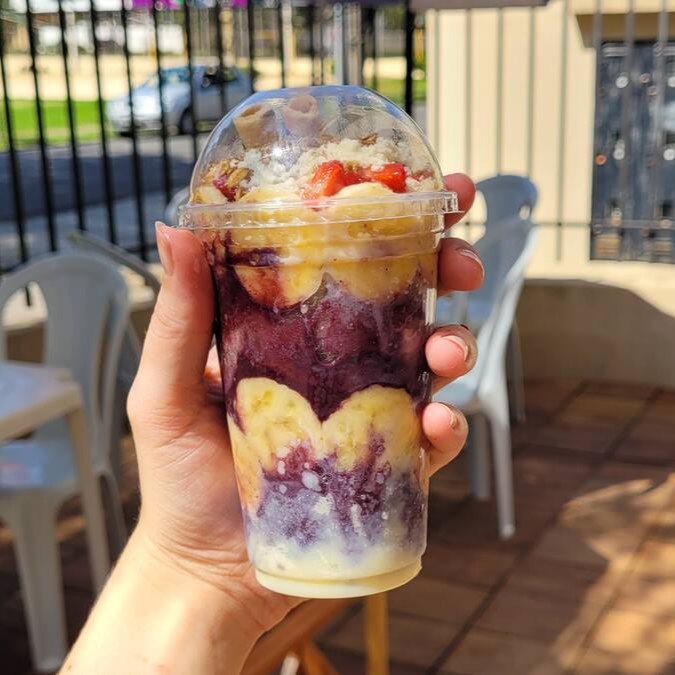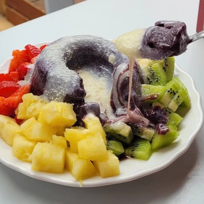 Açaí recheado com muuuuito leite condensado especial acompanhado com 4 acompanhamentos a escolha.