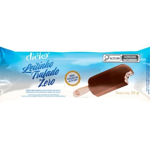 Picolé sabor leitinho com trufa de chocolate e cobertura de chocolate Zero adição de açúcar