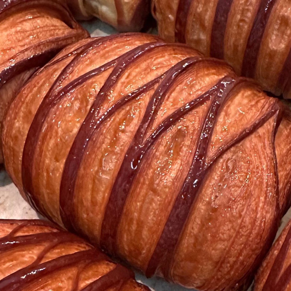 Semelhante ao Croissant, porém com uma surpresa muito gostosa: duas barrinhas de chocolate forneáveis Callebaut. O nosso pain leva um toque de fava tonka na geleia de brilho que deixa ele estonteante. Para uma experiência ainda melhor recomendamos aquecer em forno convencional ou elétrico a 180ºc por 10min ou até sentir que está quente e crocante novamente! :) No delivery é normal perder um pouco da crocância. Não esquentar no microondas! Produção diária. Foto meramente ilustrativa! ** O pain au chocolat é um croissant com muita personalidade, e muda de roupinha Dia a Dia.