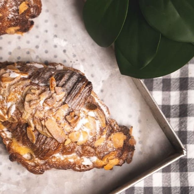 Nossa versão do pain aux amandes (croissant de amêndoas)! O Frangipane & Castanhas é o croissant em calda de cointreau, recheado com creme à base de amêndoas e manteiga (frangipane) & mix de castanhas! Para uma experiência ainda melhor recomendamos aquecer em forno convencional ou elétrico a 180ºc por 10min ou até sentir que está quente e crocante novamente! :) No delivery é normal perder um pouco da crocância. Não esquentar no microondas! Foto meramente ilustrativa!