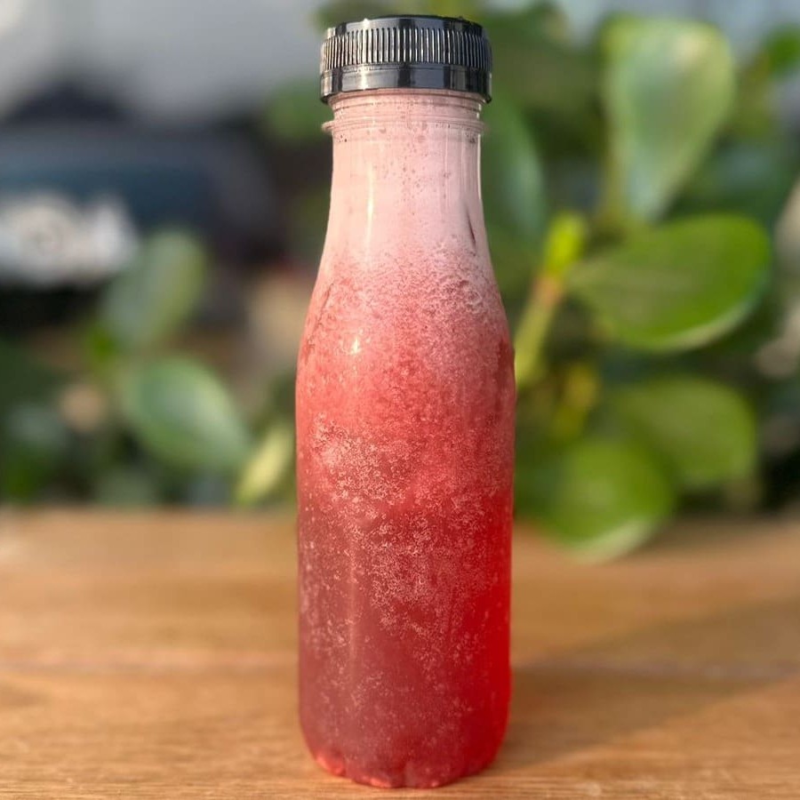 Bebida fermentada de chá sabor hibisco com uva branca. 275ml.