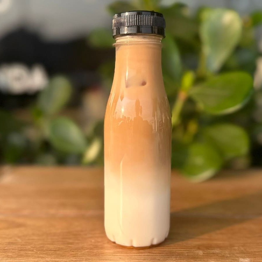 Dose de espresso de café especial, com leite, gelo & xarope Monin de Baunilha. 300ml. Consumo imediato. Imagem meramente ilustrativa.