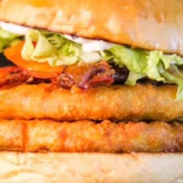 Pão 2 carne de frango crocante ,maionese da casa , dobro de Bacon alface americano, tomate.