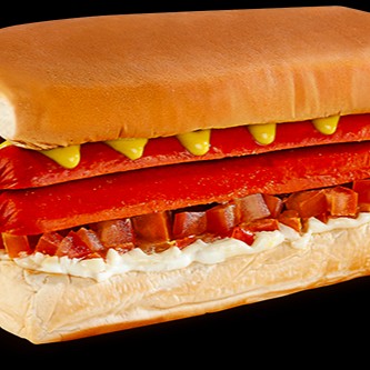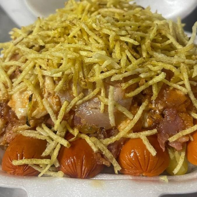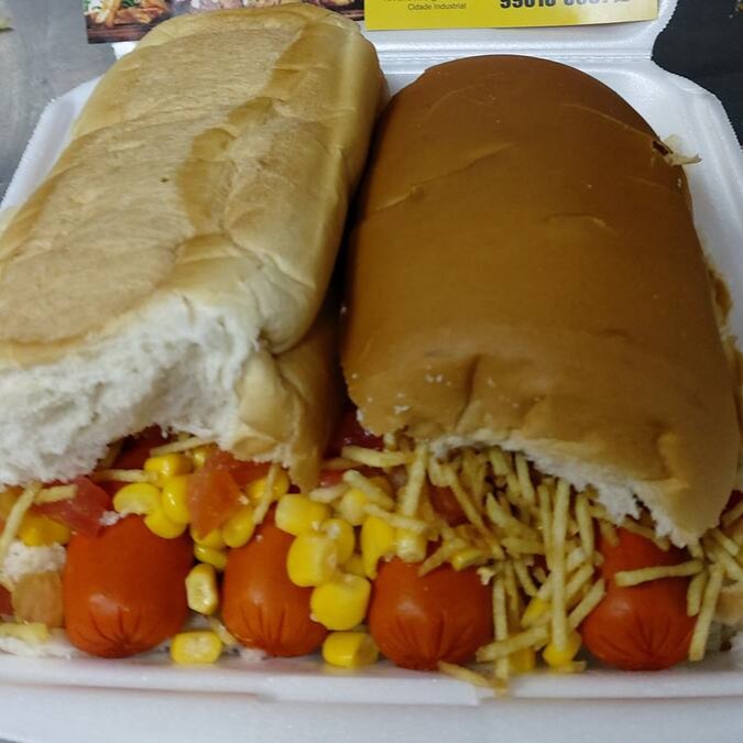Pao de hot'dog prensado , 2 salsicha, 2 ovos fritos queijo presunto maionese , tomate, milho, batata palha ,frango, calabresa , Doritos frango, cheddar e Catupiry . Vai encarar esse play ?