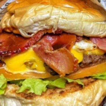 Um delicioso pão de brioche , 2 carnes ,90gr Maionese da casa , alface americana , tomate , 2 queijo cheddar derretido, 2x Bacon.
