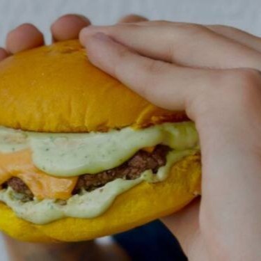 Pão de brioche , Maionese da casa , 1 hambúrguer 90gr 2 fatias de queijo cheddar derretido .