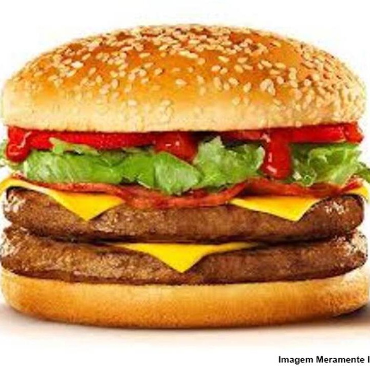 Pao com gergelim , maionese, 2 hambúrguer de 120gr carne anguns 2 fatias de queijo. Tomate em rodela, alface.